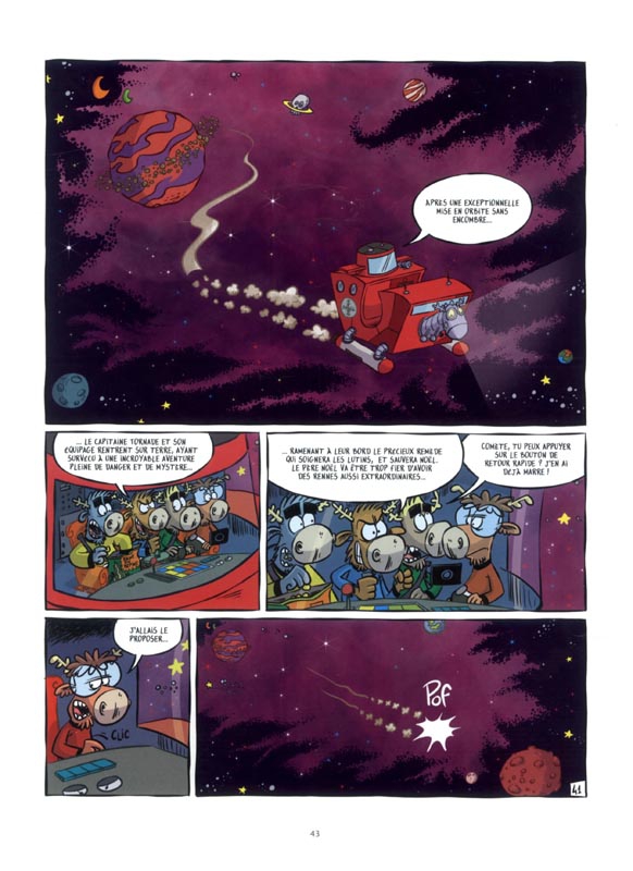 Après un brusque réveil, les 4 Rennes découvrent que les lutins du Père Noël ont été touchés par un curieux mal qui les transforme en d’horribles créatures. Tornade, Tonnerre, Comète et Furie se précipitent alors à la recherche du remède sur une étrange planète qui sent bon la courge.