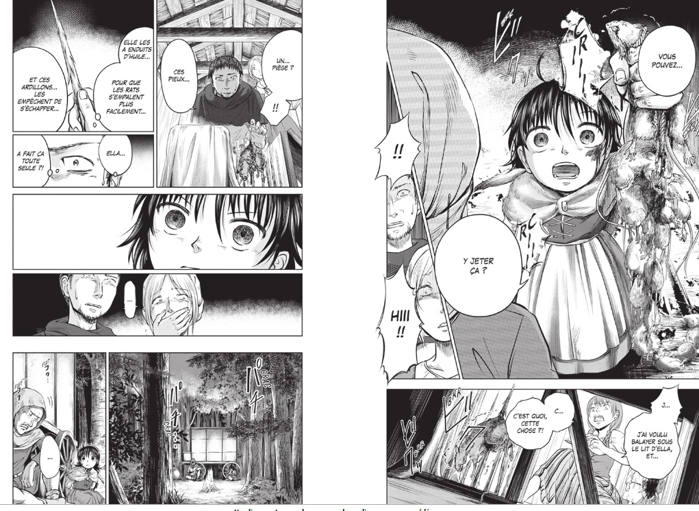 Mais Minoru Takeyoshi l’a fait en mettant en avant Ella, jeune fille vendue par ses parents biologiques car elle leur faisait peur, puis recueillie par une « sage femme » de l’époque qui hélas fut condamnée pour sorcellerie.