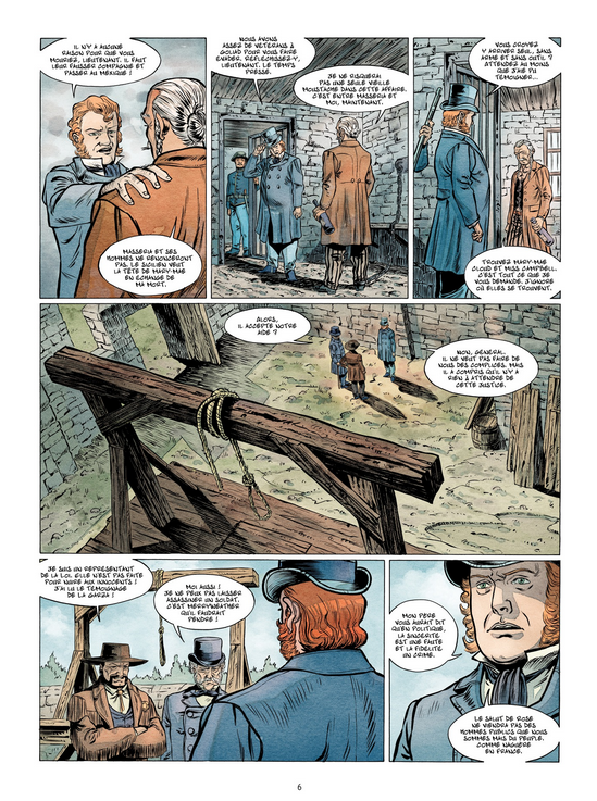 Dernier acte de cette curieuse trilogie qui se termine à peu près comme elle avait commencé, c’est à dire dans un imbroglio d’intrigues aux liens pas toujours évidents à cerner. L’originalité du thème abordé et de l’évènement historique évoqué n’auront pas suffit à élever ce western ni à lui donner ce souffle aventureux que l’on attend sur ce genre de récit. Pourtant les rebondissements ne manquent pas ! Mais peut-être justement y en a-t-il trop, mêlant trop de personnages aux intérêts divergents ou convergents – on finit par ne plus trop savoir – empêchant le lecteur d’avoir une quelconque empathie pour qui que ce soit. Même le pauvre Rose, victime d’une sombre machination et d’un procès truqué, ne provoque la moindre émotion chez le lecteur.