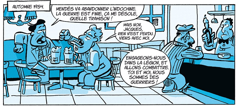 Pour tempérer ce jugement quelque peu négatif, il est vrai que, au fur et à mesure que le récit avance et qu’il se rapproche de l’époque actuelle, on fait le lien avec sa propre mémoire des évènements (Le « point de détail », le conflit avec Mégret, le 21 avril 2002 ou encore l’ascension de Marine) en tout cas, pour un quadra comme moi plutôt pas mal politisé… Mais ça ne compense tout de même pas l’absence de développements pour la plupart des faits relatés dans cette BD.