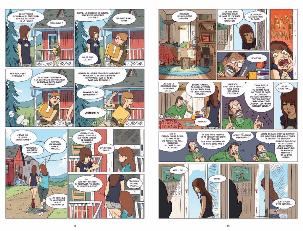 Le tout agrémenté de jargon québécois (avec lexique à chaque début de chapitre s’il vous plait) et voilà un album bien sympa à lire. On replonge dans l’adolescence, avec ses hauts, ses bas, son lot d’aventures et de découvertes sur soi mais également sur les autres. Franchement (j’ai l’impression de sortir ce mot à chaque paragraphe, non?!) j’ai bien aimé et je le conseille à chaque ado amateur de BD et prêt à voir les colonies de vacances autrement.