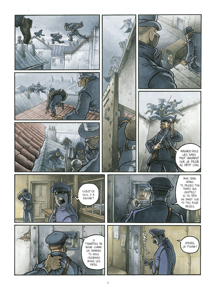 Une société secrète perdue (protégée) en haut des montagnes, quelques trahisons par-ci par-là, des combats, du mystère… Surtout du mystère d’ailleurs… Parfois même un peu trop. L’histoire de ces hommes à tête de chien œuvrant en secret pour le compte de la France à travers l’Histoire et les champs de bataille a tout pour être intéressante. Néanmoins, je dois vous avouer que, parfois, on perd un peu le fil de la narration. Ce qui est peut-être évident pour les auteurs qui ont le nez (le museau) dedans ne l’est pas forcément toujours pour nous autres lecteurs, surtout en première lecture (que quelqu’un m’explique la page 18 s’il vous plaît…). C’est d’autant plus dommage que pour le reste, il n’y a rien à redire. Le flashback de 20 ans en arrière parvient assez bien à nous présenter la situation (sauf à 2 ou 3 moments un peu flous, donc…) et met en place l’intrigue pour un deuxième et dernier tome qui aura pas mal de choses à nous expliquer.