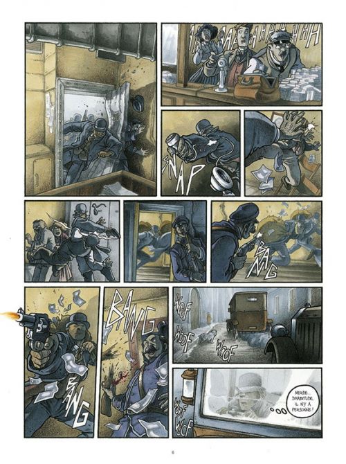 En effet, ce premier opus débute par une attaque de banque réalisée par « La bande des Dogues » et puis… plus rien (8 pages seulement sont consacrées à la Bande des Dogues qui donne pourtant son titre à l’album). On enquille directement avec le flashback. Il faudra donc nous expliquer le lien entre cette attaque et ce qui s’est passé 20 ans plus tôt car, au bout de ces 48 pages, on n’en a absolument aucune idée. En même temps, c’est un bon moyen d’attiser la curiosité du lecteur. En tout cas, avec moi, ça marche plutôt bien.