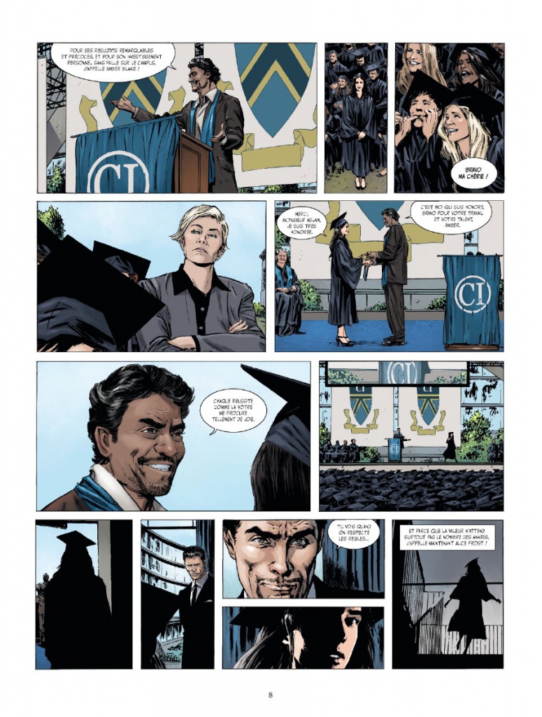 On y retrouve une héroïne « orpheline », un dessin très réaliste et un contexte très crédible. La volonté des auteurs, dans ce premier tome, est bien évidemment de poser le décor. Comme il faut en plus démarrer l’intrigue et accrocher le lecteur, ils ne prennent peut-être pas assez de temps pour développer le personnage d’Amber (notamment durant sa jeunesse et son temps dans l’institution de Cleverland qu’ils survolent un peu). Les exactions de Kavotz (mis à part l’assassinat de la meilleure amie d’Amber, et le(s) viol(s) de jeunes pensionnaires de l’école) ne sont pas vraiment précisées et semblent ne pas forcément justifier la haine tenace et l’obsession qu’Amber lui voue (à moins qu’on en apprenne plus avec un flash-back dans un tome ultérieur). C’est à peu près le seul vrai reproche que je pourrais faire à cette nouvelle série.