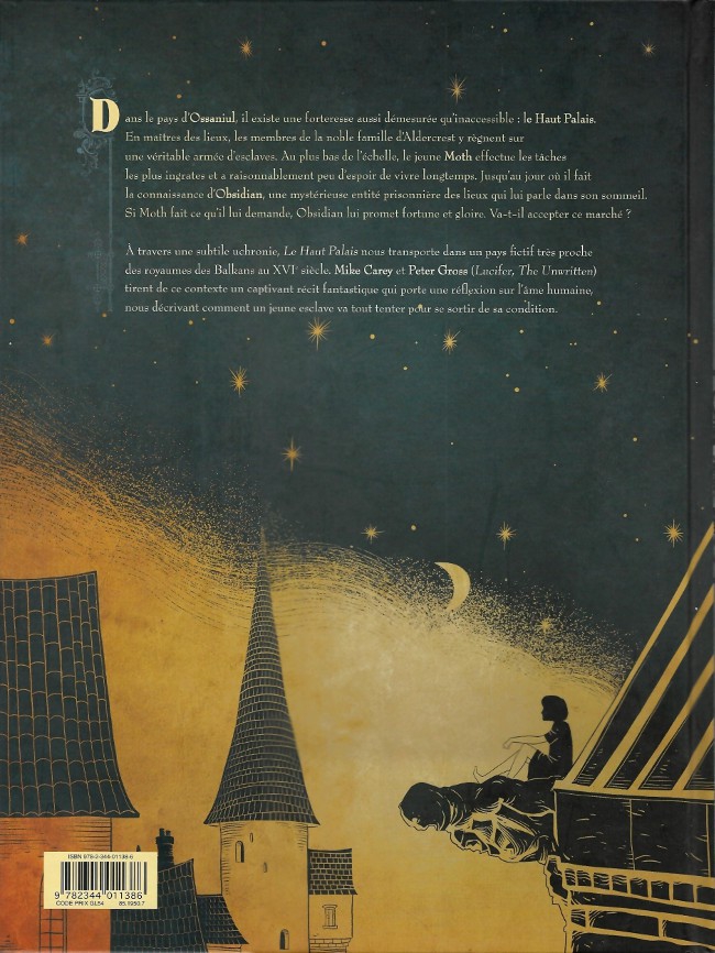À travers une subtile uchronie, Le Haut Palais nous transporte dans un pays fictif très proche des royaumes des Balkans au XVIe siècle. Mike Carrey et Peter Gross (Lucifer, The Unwritten) tirent de ce contexte un captivant récit fantastique qui porte une réflexion sur l’âme humaine, nous décrivant comment un jeune esclave va tout tenter pour se sortir de sa condition.