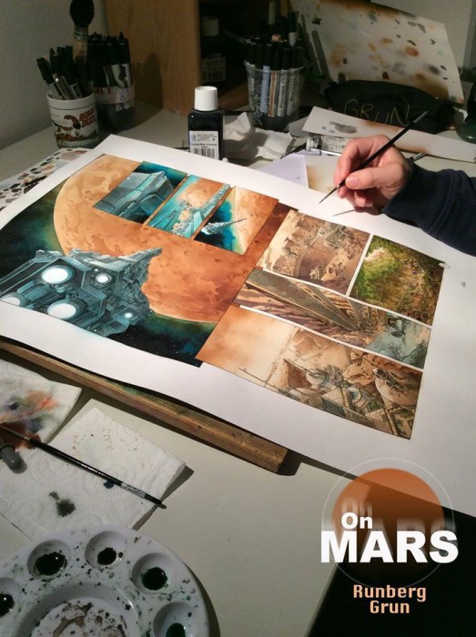 On Mars est la nouvelle série en 3 tomes de 2 auteurs qui ont le vent en poupe dans le petit monde de la BD franco-belge. Le belge Sylvain Runberg qui partage son temps entre la Suède et la France, est déjà l’auteur d’une trentaine d’albums très variés allant de la SF comme Orbital, Kookaburra universe au thriller comme Face Cachée, Trahie, Millenium à l’héroic-fantasy comme Kunungar, Hammerfall, le Règne au roman graphique comme les colocataires et London Calling. Bref, un éventail déjà impressionnant.