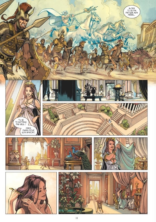 Entre batailles interminables, duels insensés et querelles divines : la guerre entre Troie et Grecs s’éternise. D’autant qu’ Achille – seul homme qui aurait pu faire pencher la balance – a décidé de renoncer aux combats. Qu’à cela ne tienne, les dieux ont décidé qu’il fallait que cette guerre se gagne d’un côté ou de l’autre. C’est donc un sacré jeu de dupes qui se déroulent au-dessus des têtes mortelles… Une épopée classique qui s’annonce prometteuse en couverture, mais dont le dessin nous laisse un peu déchanté au fil des pages. Un trait grossiers, des divinités sans réel charismes, des dents de traviole, … mais une ambiance ! Incontestable, qui va crescendo pour nous faire languir après le dernier tome de cette trilogie.