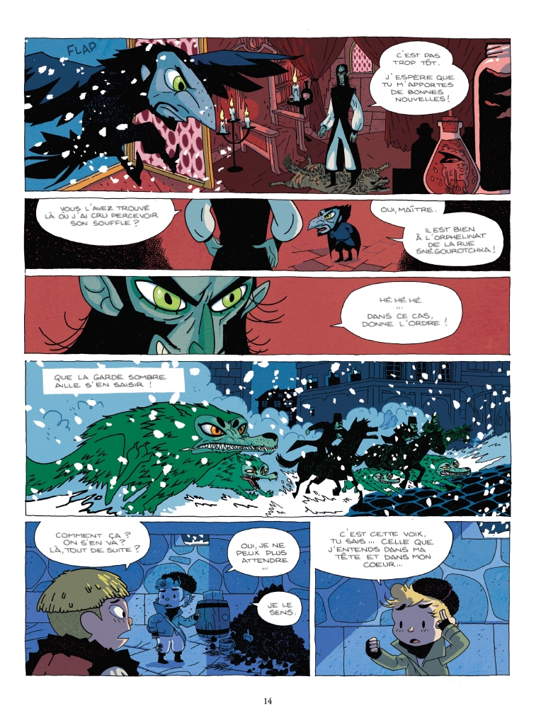 Que n’ai-je lu d’histoires slaves durant mon enfance. Du coup, j’ai cru perdre trente ans en parcourant ces pages. Je me suis revue, blottie dans mon duvet, bordée bien comme il faut pour ne pas avoir froid et ma maman me racontant les aventures de la princesse Anastasia, le grand et méchant Raspoutine, la sorcière Baba-Yaga dans les bois, les grands ours, la neige éternelle… que de souvenirs qui ont resurgis grâce à « Balthazar au pays blême ».