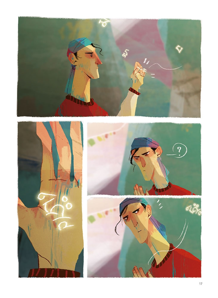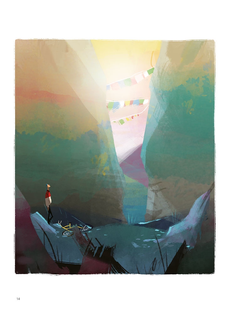 Il n’y a pas de mots, mais des images. Simples. Pures. Énigmatiques et pourtant claires, sans équivoque. Un dessin qui relève de la poésie. Tous ces gens réunis par le voyage, que ce soit pour aller au travail, à la boulangerie ou au bout du monde et qui rencontrent ce petit bonhomme souriant. Ce petit mime en couleurs qui vous rappelle que partout on peut être chez soi. Il suffit de laisser aller son cœur et de s’abandonner au bien-être réconfortant de se savoir à la maison où qu’on soit.
