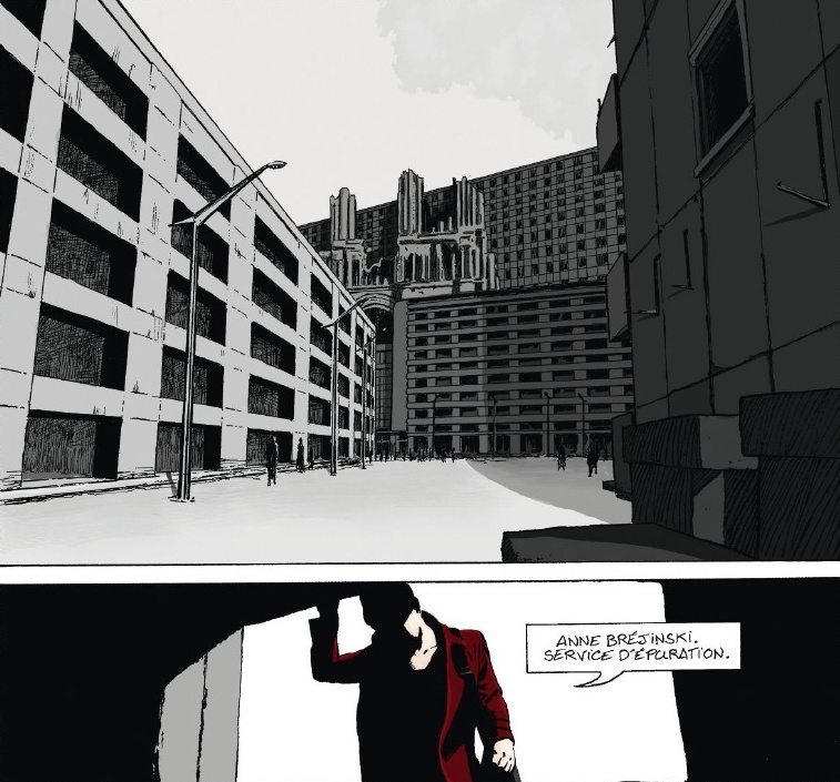 Côté dessin, c’est à la fois beau et sobre, froid et limpide. Bref, c’est en accord avec le sujet et notamment la perfection recherchée par cette société future. Les choix de découpages et de cadrages sont très cinématographiques et l’on ne peut s’empêcher de penser à une (future) adaptation filmée. Les décors sont minimalistes ce qui rend le tout très impersonnel et crédible à la fois. Certes, le lieu de l’action est dévoilé par la présence d’une Tour Eiffel en ruine mais c’est à peu près la seule indication géographique que l’on a (avec le fameux tableau trouvé dans la rue suite à un affaissement…).
