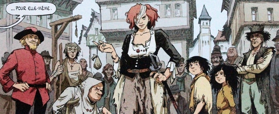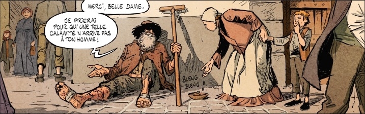 Enfin, le dessin. Je le trouve excellent, vraiment. Plus je le regarde et plus je me dis que c’est vraiment du très très bon boulot. Les décors sont sublimes, les couleurs parfaites et les personnages, sans être caricaturaux, sont bien trempés dans leur époque. Bref, du très très beau dessin.