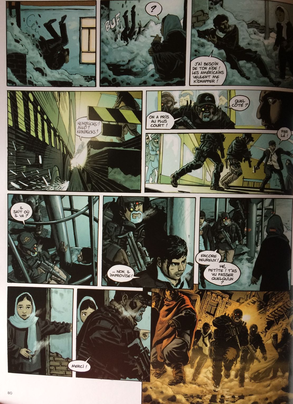 Le dessin réaliste de Dominique Bertail est assez bluffant. Entre foisonnement et épure, entre ombres et lumière, il se joue des codes habituels et prend le lecteur à contrepied en exposant les sombres desseins du pouvoir dans une blancheur et une lumière éclatante. Les villes sont lisses, belles et propres, comme s’il fallait en mettre plein la vue pour masquer la vérité. Pas de coins sombres et exotiques ou se trameraient d’ignobles complots. Tout se fait dans une transparence et une lumière apparente….