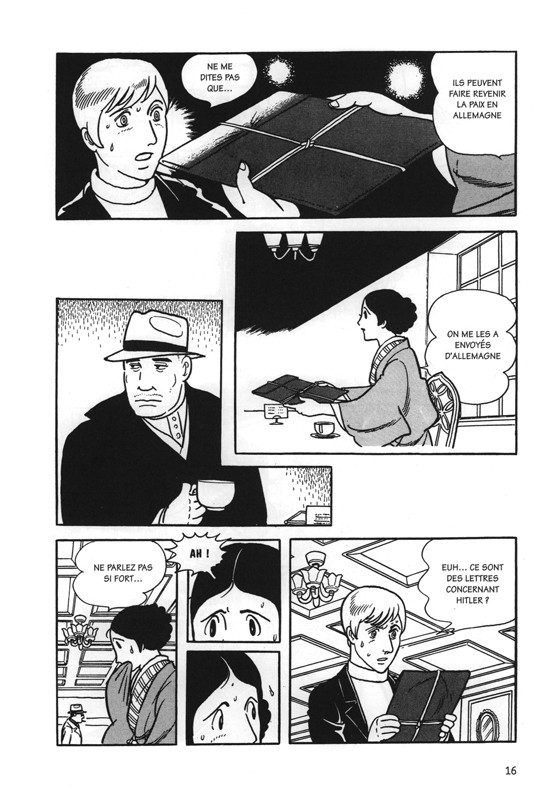 Ce manga de plus de 1000 planches raconte la destiné d’individus que tout semble opposer, en plein théâtre de la seconde guerre mondiale, avec son lot d’intérêts et de raison d’État poussant les uns et les autres jusqu’aux crimes les plus abjects que l’on sait. L’histoire débute en 1936 lors des jeux olympiques de Berlin. Alors que le journaliste Sohei Togué couvre l’évènement, sa vie bascule lorsque son frère Isao le contacte pour lui confier un terrible secret qui pourrait changer le cours des évènements, à commencer par le destin d’Hitler. La Gestapo et la police japonaise mettront tout en œuvre pour empêcher Togué de diffuser ce secret si dangereux. Mais il n’est pas le seul à connaitre ce secret. Adolf Kaufman, fils d’un diplomate nazi résidant au Japon et Adolf Kamil, fils d’un boulanger juif, établi lui aussi au Japon, se sont liés d’amitié et ont eu connaissance malgré eux de ce secret, ce qui va évidemment bouleverser leur destinée et celle de leur proches.