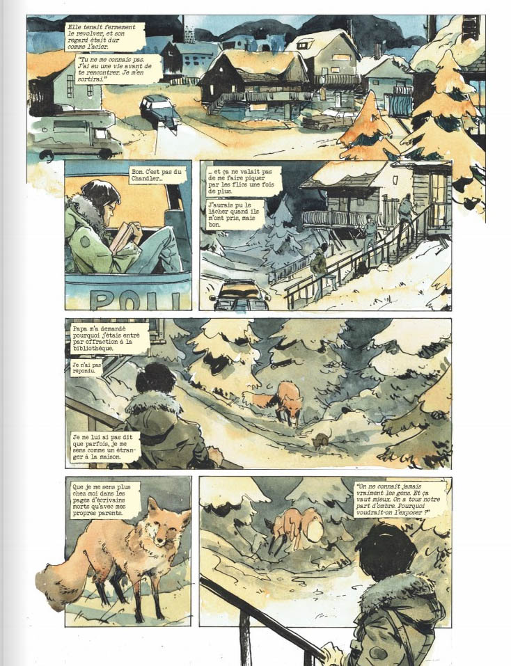 Un thriller mordant comme le froid polaire. (J’aime bien la formulation de l’éditeur je la garde). Ollie Masters signe ici un scénario type fargo avec un thriller intéressant bien que classique avec des thèmes comme le sentiment d’appartenance et la recherche de la vérité. Sympa. Bien que peu détaillés les dessins et couleurs de Tyler Jenkins servent le récit et nous immerge bien dans l’aventure de Teddy.