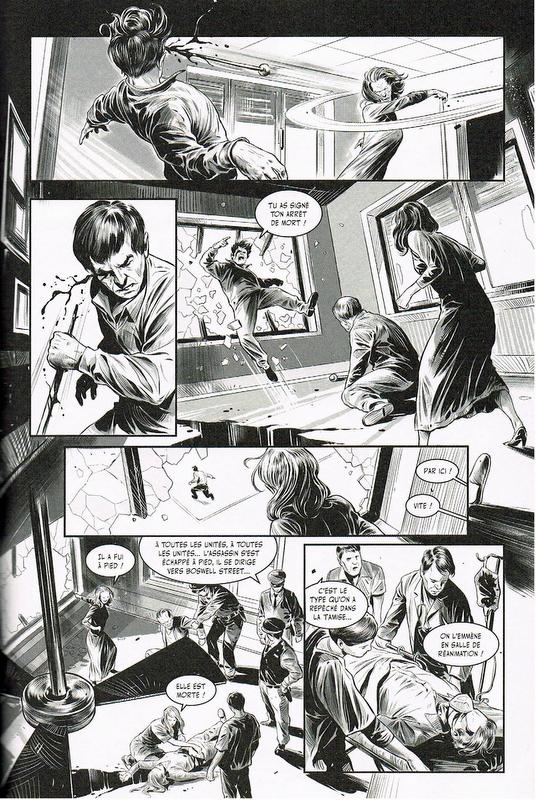 Bon ! Je vous l’avoue tout de suite, je n’ai rien compris à cette histoire. Les pages et les actions se suivent avec pratiquement pas de texte ce qui ne nous éclaire pas beaucoup sur les motivations d’Alistair Crowley (personnage ayant vraiment existé) qui a convoqué cet être maléfique, « Mrs M. », sur terre, ni sur les moyens utilisés par le héros pour en venir à bout. La scénariste Giovanna Furio est passionnée d’ésotérisme et cela se sent dans son récit, réservé à peu d’initiés dont je ne fais vraiment pas partie.