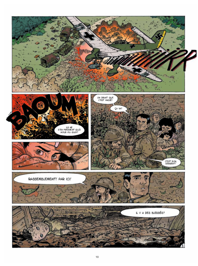 L’histoire commence vraiment très bien avec la débâcle de l’armée française. On s’y croirait avec les ordres et les contre-ordres d’officiers « compétents », une pagaille pas possible et dans tout ce bordel, notre héros qui essaye de faire vaille que vaille son devoir. Ensuite, c’est le règne de la débrouille. On regarde ici la guerre par la petite lorgnette d’un simple camionneur. Cette façon de faire n’est pas sans rappeler la série « un village français ». D’ ailleurs si vous avez apprécié cette série, je vous conseille fortement ce Merlu car tous les mêmes ingrédients y sont et on s’attache très vite aux principaux protagonistes.