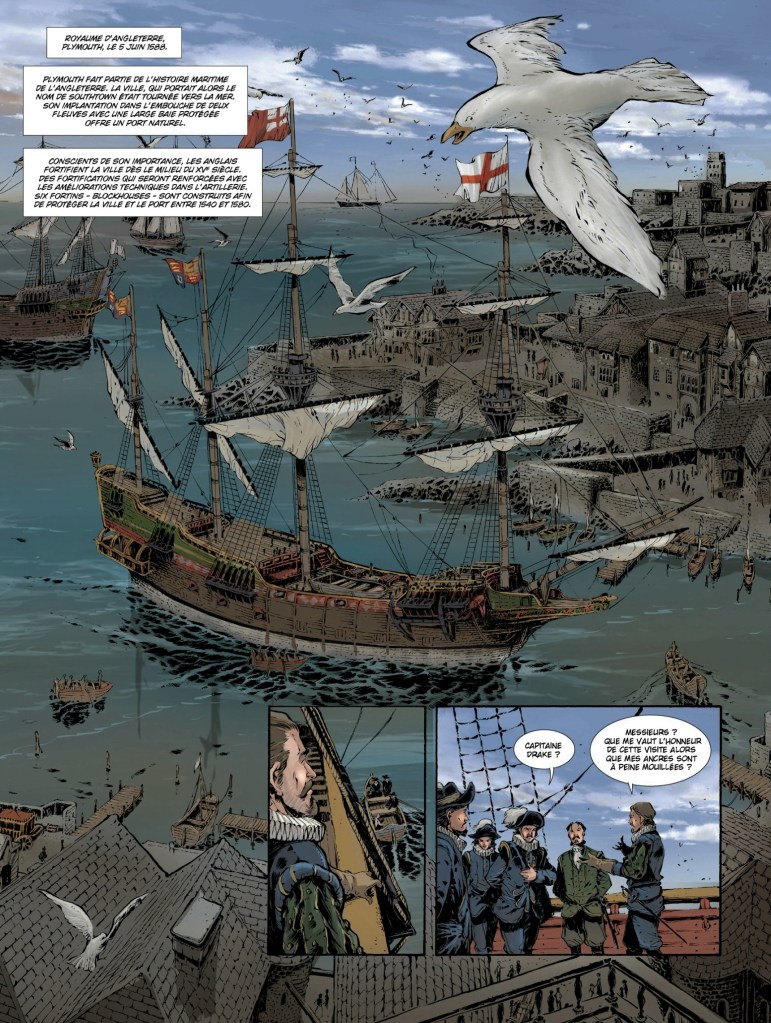 Nous voici donc plongés au cÅ“ur du 16ème siècle et du conflit opposant l’Espagne à l’Angleterre, deux ennemis jurés ! Le très catholique roi d’Espagne Philippe II ne supporte pas que l’Angleterre soit dirigée par une femme hérétique convertie au protestantisme. Il voudrait faire revenir ce pays dans le giron de la Papauté et pour ce faire, décide de créer une immense armada pour attaquer l’Angleterre qui ne cesse de piller ses navires et sa précieuse marchandise ! C’est une entreprise risquée car c’est aller sur le terrain des Anglais, c’est-à -dire la mer et La Manche ! Même si les navires espagnols sont excellents, le pari est osé !