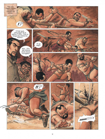 Et je dois bien avouer que je suis un peu déçu. Un peu mitigé sur l’histoire qui n’avance guère. On a en somme un Murena qui reprend ses esprits et un Néron qui essaye de se dépêtrer du nid de vipères qui rôdent autour de lui. Il suffit de lire le résumé et vous pourriez allégrement zapper cet album. Bon, ça nous permet au moins de bien situer tous les personnages et de faire connaissance avec de nouvelles têtes dont une sera des plus surprenantes. Il n’empêche que la lecture est toujours aussi immersive grâce au talent de conteur de Jean Dufaux.