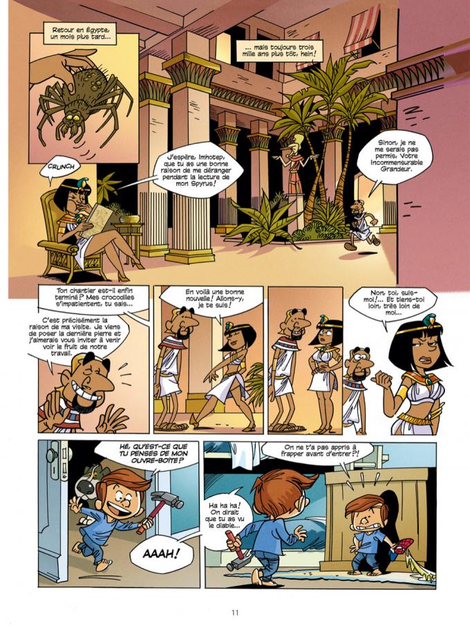 Je n’en dirai pas plus car je gâcherais la surprise ! C’est une super BD jeunesse très amusante bourrée d’anachronismes et c’est justement ça qui est drôle. Les dessins sont bien axés pour un public de jeunes lecteurs mais je dirais que grands comme petit y trouveront leur compte. Moi, personnellement, j’ai hâte de voir la suite des aventures de nos intrépides jumeaux et de la reine Hatchepsout, va-t-elle obtenir sa vengeance tant espérée ? Le mystère plane mes amis…