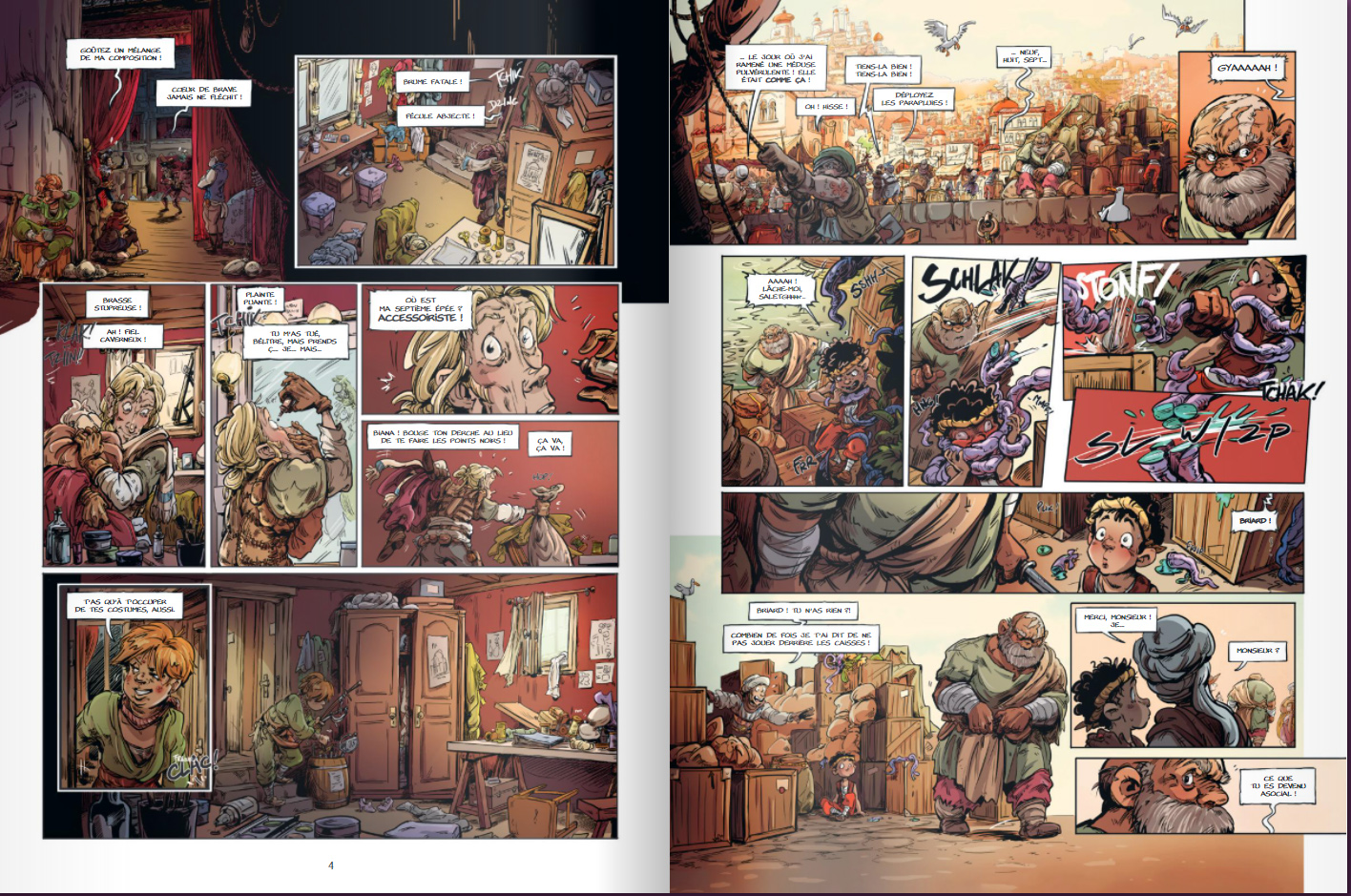 L’univers développé dans le premier tome (Octobre 2019) était original et l’un des points forts de cette série scénarisée par Isabelle Bauthian. L’action prenait place à Pâmoison, la cité des poisons et ses duels aux potions toxiques, ses guérisseurs, ses apothicaires et autres guildes en quête d’aventures et de trésors. Autre point fort, des personnages aux caractères marqués et intéressants incarnés par un trio : Natch, Greyson et Névo. Ces deux derniers pris dans la nasse par un dragon au tempérament… inhabituel dirons-nous, se retrouvent (un voyage temporel plus tard) ici dans le passé pour corriger leurs erreurs.