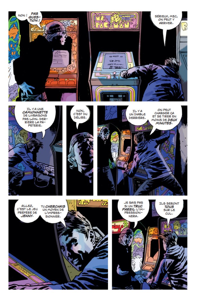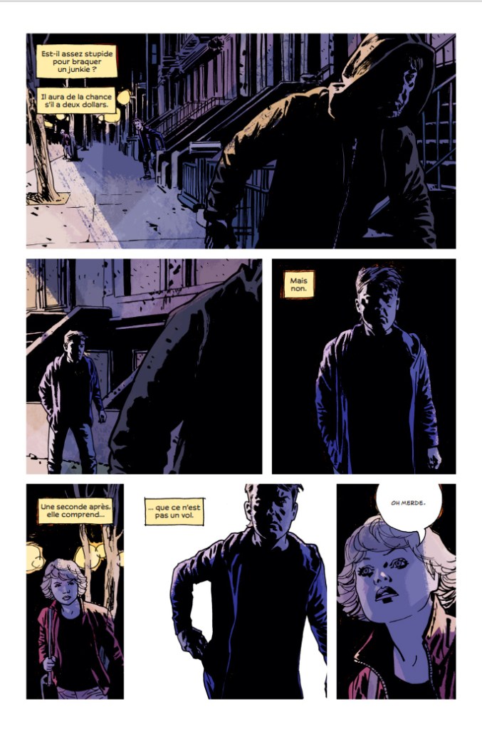 Dans cet album la volonté de Brubaker est l’inverse selon moi. Il prend son temps pour développer sa narration cette fois centrée sur trois personnages majeurs : Teeg, Jane et Ricky, il veut qu’on apprenne à connaitre leurs caractères, à comprendre leurs motivations et leurs décisions, et quand nous sommes bien mûrs, c’est là et seulement là qu’il décide de nous balancer la situation pourrie. Avec ce braquage (qui prend tout un single US) et ce final vraiment : Ed Brubaker quel génie, il arrive à faire un album de presque trois cents pages qui se tient à lui seul, qui arrive à faire lien avec sa série initiale sans frustrer l’éventuel nouveau lecteur. Respect.