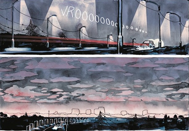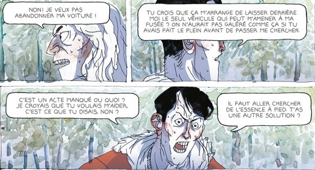 Et puis… il y a le dessin. En fait, ce sont surtout les visages des personnages qui me gênent. Les traits sont hyper présents et outre que ça les rend très anguleux, les expressions sont également souvent assez agressives. Résultat, on a parfois du mal à éprouver de la sympathie pour eux et, plus simplement, à s’identifier. Après, ça reste tout de même de l’aquarelle, avec toute la poésie que cela peut impliquer, et les décors sont de facture tout à fait honorable.
