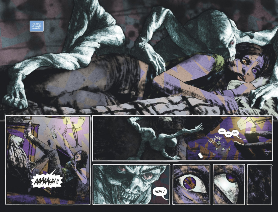 Ah les bandes dessinées d’horreur je les aime toujours autant. D’abord parce qu’il n’y en a plus autant qu’avant et aussi parce c’est très dur à (bien) faire. L’horreur, la vraie, celle qui vous dégoûte, qui vous dérange, qui vous oblige à agir sans réfléchir, non pas par le sang (assez peu dans l’album au final) mais par les situations et le choc visuel.  L’analogie qui va bien avec le cinéma : The Fly (Cronenberg), The Thing (Carpenter).