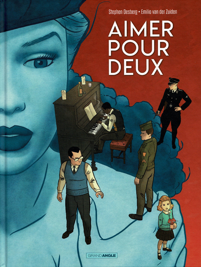 Découvert, pour ma part du moins, avec « Ecoline » : je ne pouvais pas ne pas trépider à l’annonce d’une nouvelle BD signée Stephen Desberg. D’autant que la couverture, de la plume d’Emilio van de Zuiden, est on-ne-peut-plus alléchante ! Un visage de pin-up faisant un peu penser aux Andrews Sisters, un joueur de jazz piano dont la vie ne tient qu’au Luger tenu par le nazi dans son dos, un militaire américain fusillant du regard un homme à lunettes qui, lui, tend une main protectrice vers la petite fille blonde qui nous regarde.
