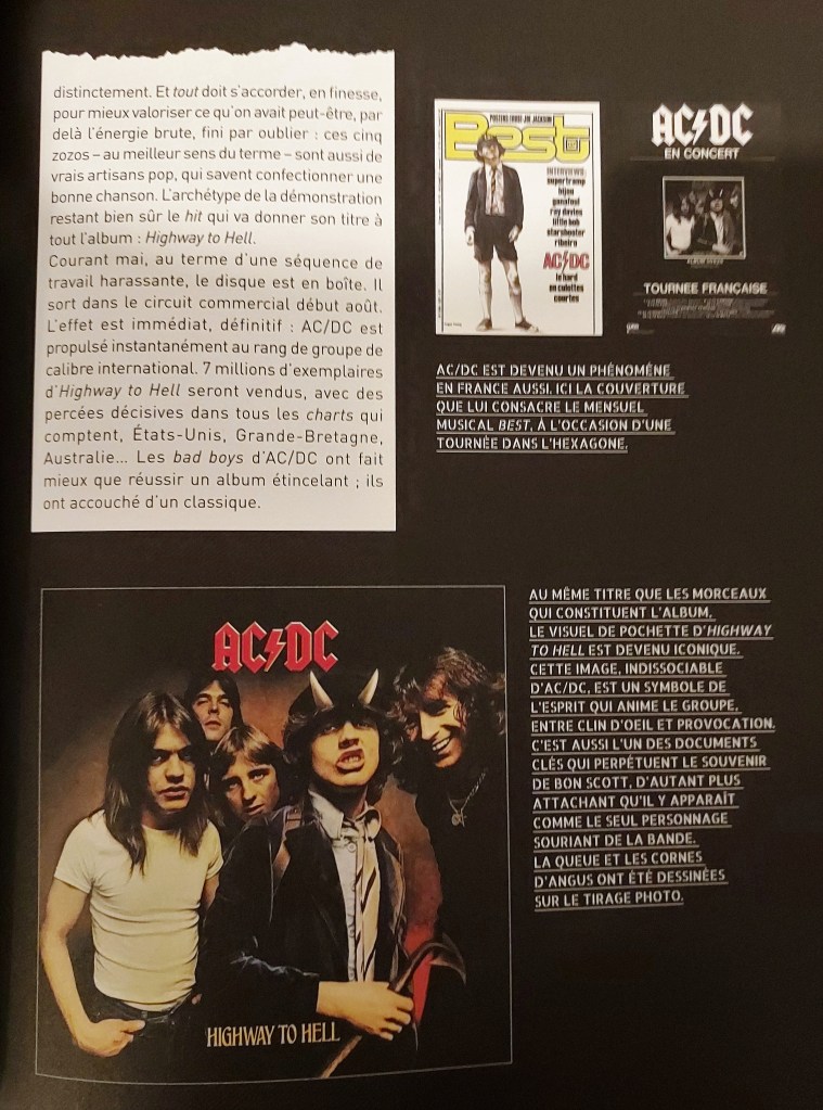 AC/DC en BD permet de rassembler les fans comme les simples curieux. C’est très bien documenté et riche en anecdotes, la biographie du groupe se superpose à sa discographie. L’envie de mettre en fond sonore les morceaux mis en avant est omniprésente. Le bruit des pages qui se tournent a rapidement été recouvert par mes fredonnements, mes pathétiques imitations de Brian Johnson, mes couplets incomplets comblés par du yaourt et, surtout, par des mouvements de tête quasi dépourvue de cheveux. J’ai donc lu et écouté cette BD silencieuse. L’expérience est rendue possible par la passion évidente de Thierry Lamy pour le groupe australien.
