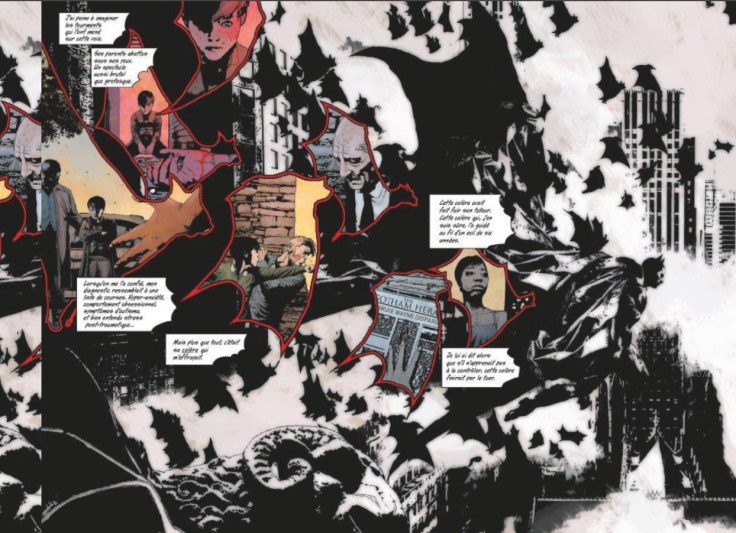 Vous le savez maintenant les parutions mentionnant le « DC Black Label » sont des titres aux récits plus sombres et plus matures que les histoires super-héroïques habituelles. Mattson Tomlin (co scénariste du film fraichement sorti) nous livre donc ici un Batman jeune-adulte plus moderne, plus réaliste dans son approche. Aussi, il s’attache à rendre son Batman « plausible » avec pêle-mêle : justification du costume, pose de tyroliennes sur les toits pour voyager rapidement, des motos « classiques » planquées un peu partout en ville pour faciliter la fuite/poursuite. C’est tout de suite plus crédible qu’un appel à la Bat-cave via la Bat-ceinture pour la livraison d’une (Bat)moto tombée du ciel.