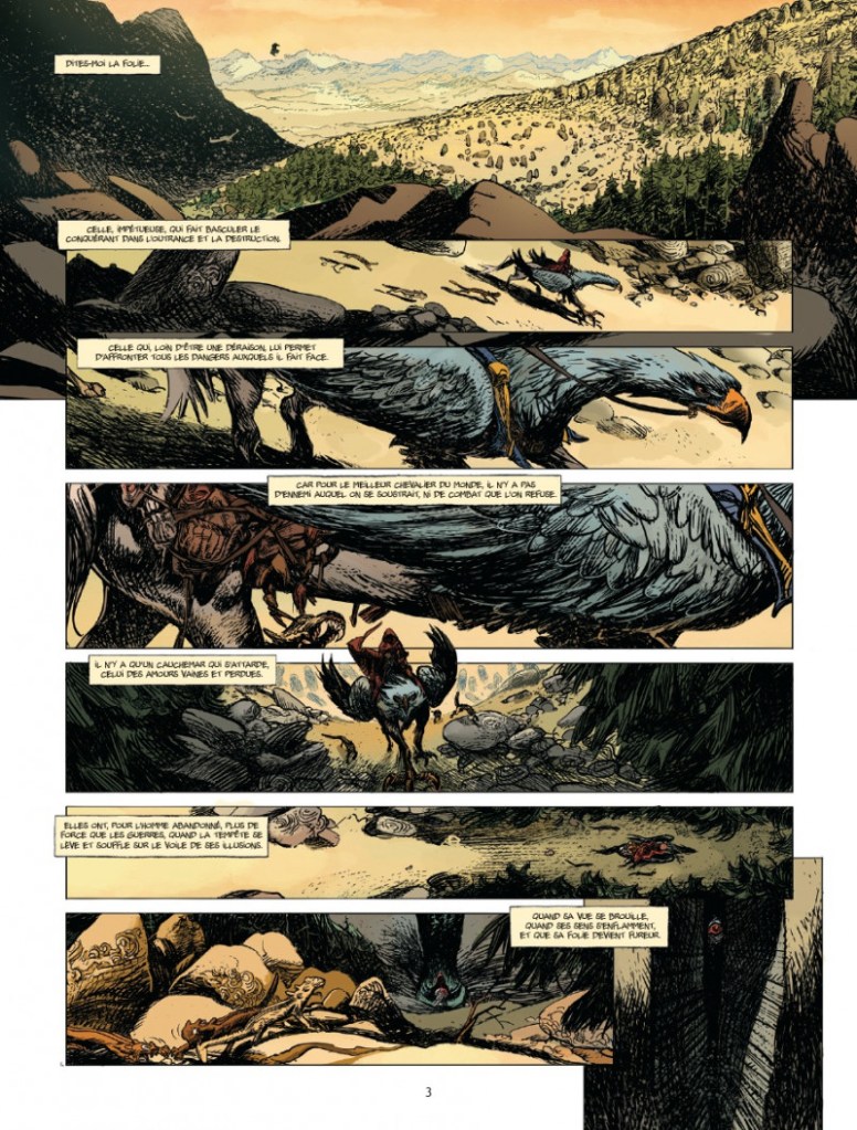 Les dessins sont très incisifs avec beaucoup d’ornementations donnant là aussi un mélange entre fantasy et réalisme de l’époque Renaissance. Ils contiennent également beaucoup de hachures ce qui correspond, selon le dessinateur, aux esprits tourmentés des protagonistes. J’ai eu la sensation de plonger dans une sorte de fresque mi-fantasy, mi-épique sur fond de drames personnels et de puissances supérieures. Mon seul bémol, c’est que je trouve que c’est un petit peu difficile à suivre au niveau des tenants et aboutissants ainsi que des personnages mais ce n’est pas rédhibitoire. Cet album est vraiment une œuvre à part de toutes celles que moi, modeste chroniqueuse non experte, j’ai pu lire. J’ai hâte de découvrir le second et dernier tome de ce dytique. N’hésitez pas vous aussi à tenter l’expérience surtout si vous aimez la fantasy et les mythes arthuriens 🙂