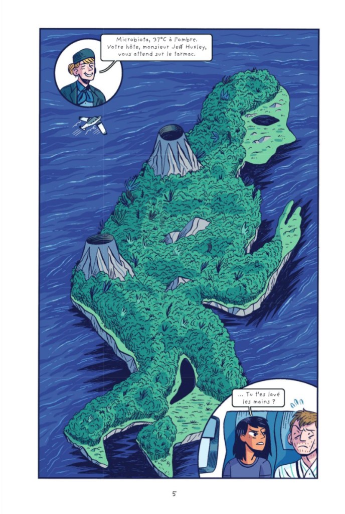 Alice Sentina, la journaliste, et Jeff Huxley le golden millionnaire vivent un périple extraordinaire dans les entrailles de Microbiota. Les références à Jules Verne et la découverte d’un septième continent et à un autre Huxley (et son meilleur des mondes) annoncent un mélange détonant entre récit d’aventure et science-fiction.
