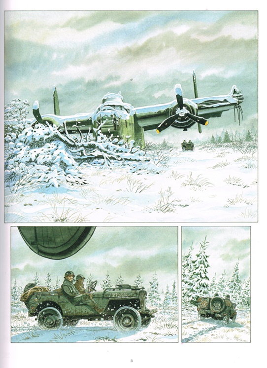 On retrouve Virgil et Jared à bord d’une jeep willys essayant de regagner leur ligne. La neige est omniprésente tout comme le racisme primaire qu’habite le soldat de l’Alabama et la plupart des soldats blancs américains tellement imbus de leur pseudo supériorité. Mais Jared va progressivement changer d’avis et se lier d’amitié avec ce soldat noir. Mais ils doivent avant tout sauver leur peau, le danger est partout et les Allemands sont toujours aussi imprévisibles et menaçant. Ce périple est l’occasion pour Philippe Jarbinet de retracer avec un justesse folle les combats du 551st parachute infantry battalion (des 790 hommes que comptait cette unité , il n’en resta que 110 après le 7 janvier 1945 !). L’auteur verviétois a d’ailleurs fait appel à des membres du belgian milatary vehicle trust pour coller au plus près à la réalité des véhicules, des uniformes, à la topographie des lieux. Bref, un énorme travail méticuleux qui est magnifiquement retranscrit dans ce 10e opus. Il est quasiment impossible de faire mieux dans le style du dessin réaliste. Bravo à lui.