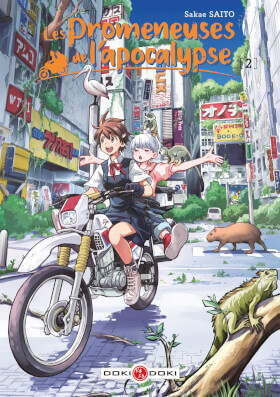 Voici un manga intriguant à bien des égards. J’ai décidé de vous parler des deux premiers tomes ensemble car il ne faut surtout pas s’arrêter au tome 1. Sakae Saito a quelque chose derrière la tête c’est sûr. Le titre, combiné aux deux couvertures annoncent la couleur : Deux jeunes filles souriantes se promènent à moto dans un Japon dévasté.