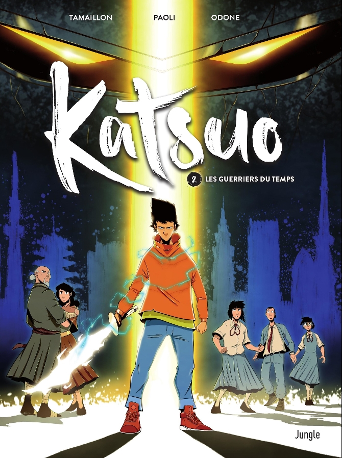 Voilà comment Katsuo va poursuivre le combat dans son lycée, accompagné par ses camarades du passé ayant réussi à trouver un moyen pour le rejoindre. Faisant de notre troupe de valeureux adolescents : « Les Guerriers du Temps » ! Une série qui ne manquera pas de faire un peu penser à l’Animé sur Jackie Chan (pour ceux qui connaissent). Le trait de Raoul Paoli se veut occidental, même pour dépeindre des asiatiques, sans entrer dans le caricatural. Un encrage épais, des couleurs harmonieuses, voilà qui accompagne fort bien le scénario de Stéphane Tamaillon qui maîtrise la culture japonaise au vu des détails apportés – comme les formules de politesse, les appellations des parents… tout en gardant l’esprit créatif et narratif des auteurs franco-belges, ce qui fait de Katsuo une chouette série pour les adolescents qui ne cherche pas à ressembler à des mangas tellement à la mode, mais de néanmoins marquer les esprits sur la culture du pays du Soleil Levant.
