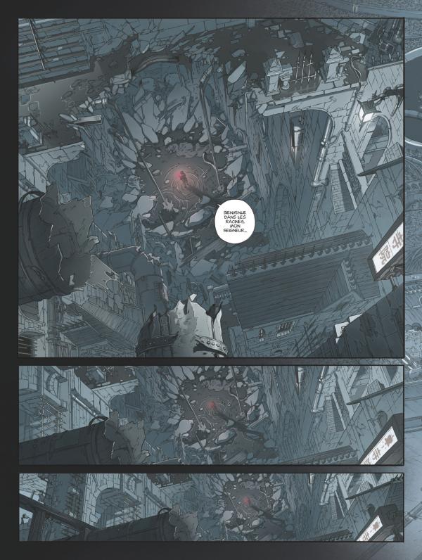 Nous quittons le royaume de Talion pour celui de Damoclès. Ce tome 2 creuse davantage une intrigue déjà complexe. Un conseil : prenez votre temps. Si vous avez réussi à ne pas vous perdre dans la cité de Forenhaye il est bien possible que les mines de charko soient, comme le scénario, labyrinthique. Après les racines, les veines. A l’image de la nature et de l’humanité qui semblent à la fois se confondre et se confronter. Cette nature qui veut annihiler l’humain de la surface de la Terre et qui pourtant semble avoir, comme seul espoir de survie, celui même qui est le seul à pouvoir le soigner en trouvant un hypothétique sérum.