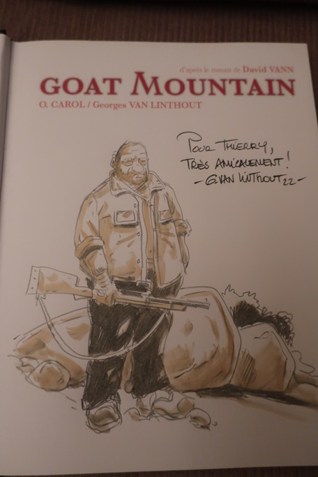 C’est à l’occasion d’une séance de dédicaces à la libraire la traversée à Verviers que j’ai eu l’occasion de rencontrer les auteurs du label le chaînon manquant et notamment Georges Van Linthout auteur du dernier Goat Mountain.