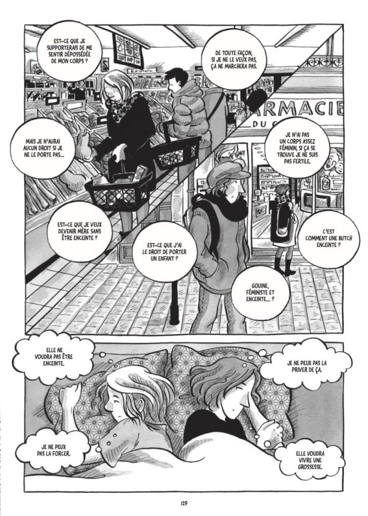 Ce volumineux roman graphique se montre le plus précis possible dans les informations apportées et les émotions partagées. Daphné et Julie se livrent et l’historique de la loi sur la ¨PMA est tracée en parallèle. Leur histoire se mêle à l’Histoire. Car il est question ici de la lutte de deux femmes pour obtenir les mêmes droits que les autres. Leur vécu pose des noms et des visages à un combat qui fait, encore maintenant, l’objet d’un débat autour des thèmes de la parentalité, des droits des femmes et des droits LGBT. Ce combat dépasse donc le cadre de leur propre vécu, il se veut plus universel, et défend un nouveau projet de société. D’autres parlent de remise en cause des civilisations, expression à la hauteur des passions et des haines qui émanent de cette quête d’égalité.