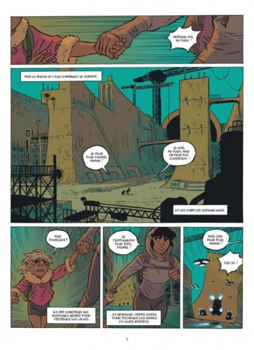 Une BD futuriste mais néanmoins aux accents actuels, finalement n’est-ce pas ce qui nous pend au nez ? On parle sans cesse du réchauffement climatique, des catastrophes qui s’enchaînent à travers le monde et même chez nous. Des sécheresse mais aussi de la montée des océans, nous citoyens pouvons faire des petites choses mais c’est l’entièreté de notre mode de vie et société qu’il faudrait changer et on est très loin d’y être. En attendant, nous nous insurgeons pour des broutilles tandis que le monde vacille, nous contentant de notre petite personne. Je ne blâme personne de se comporter ainsi, j’énonce juste un fait car finalement, je n’échappe pas à ce constat !