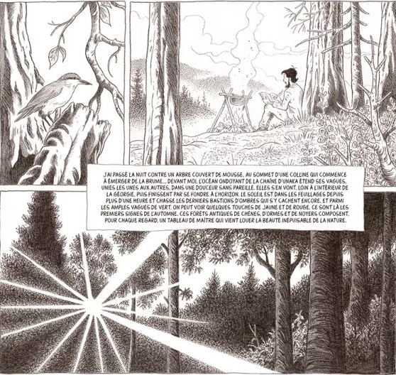 Le scénario, quant à lui, à défaut d’être très original, on est dans un récit de voyage pur et simple, nous présente tout de même un personnage, John Muir, dont la pensée, les réflexions et le comportement général apparaissent extrêmement modernes. À une époque où la plupart des gens ne font qu’écouter les religieux qui leurs expliquent que Dieu a créé la Terre pour eux et que la nature doit forcément se soumettre à la bonne volonté de l’Humanité, dans tous ses excès, of course, sa vision va carrément à l’encontre de ce discours dominant. Il estime, à juste titre, qu’il faut la préserver et vivre en bonne harmonie avec elle. Idem en ce qui concerne son rapport aux individus qu’il croise. Il est apparemment très sociable (il se fait des potes tout le temps…) et ne semble pas se préoccuper des classes sociales ou des origines ethniques de ses diverses accointances (pour ce dernier thème, l’excellent cahier explicatif en fin d’ouvrage viendra un peu nuancer cette vision…).