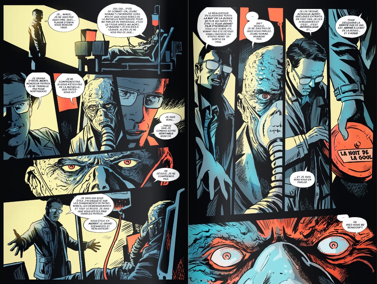 Graphiquement Francesco Francavilla réalise des planches tout en ambiance film de la Hammer du plus bel effet, ce qui contribue à la réussite de l’album, je vous invite d’ailleurs à le suivre sur les réseaux sociaux, il y poste régulièrement des revisites d’affiches ou de personnages de films d’horreur.