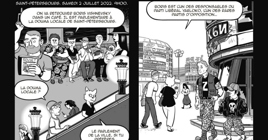 Fin juin 2022, alors que les télévisions de l’aéroport de Dubaï annoncent les dernières avancées russes en Ukraine, Nicolas Wild s’apprête à embarquer pour Saint-Pétersbourg. Si les frontières russes sont fermées aux journalistes occidentaux, la réglementation n’a pas changé pour les artistes. Équipé de son attirail de dessinateur et un poil stressé, l’auteur de « Kaboul Disco » part à la rencontre d’un peuple coupé du jour au lendemain d’une grande partie du monde.