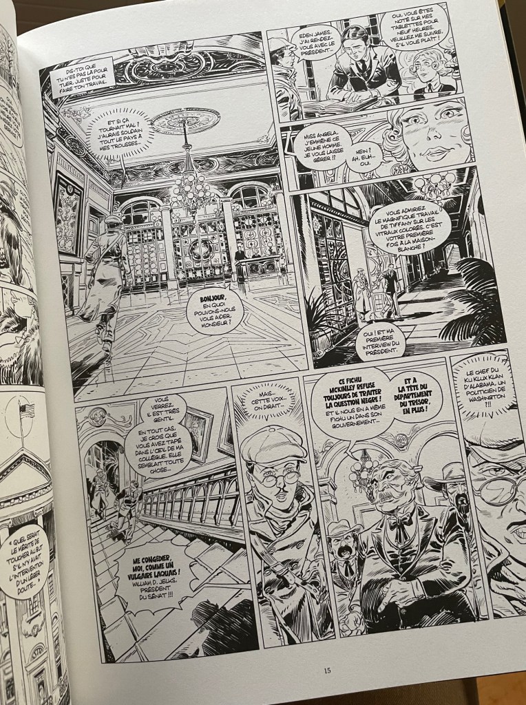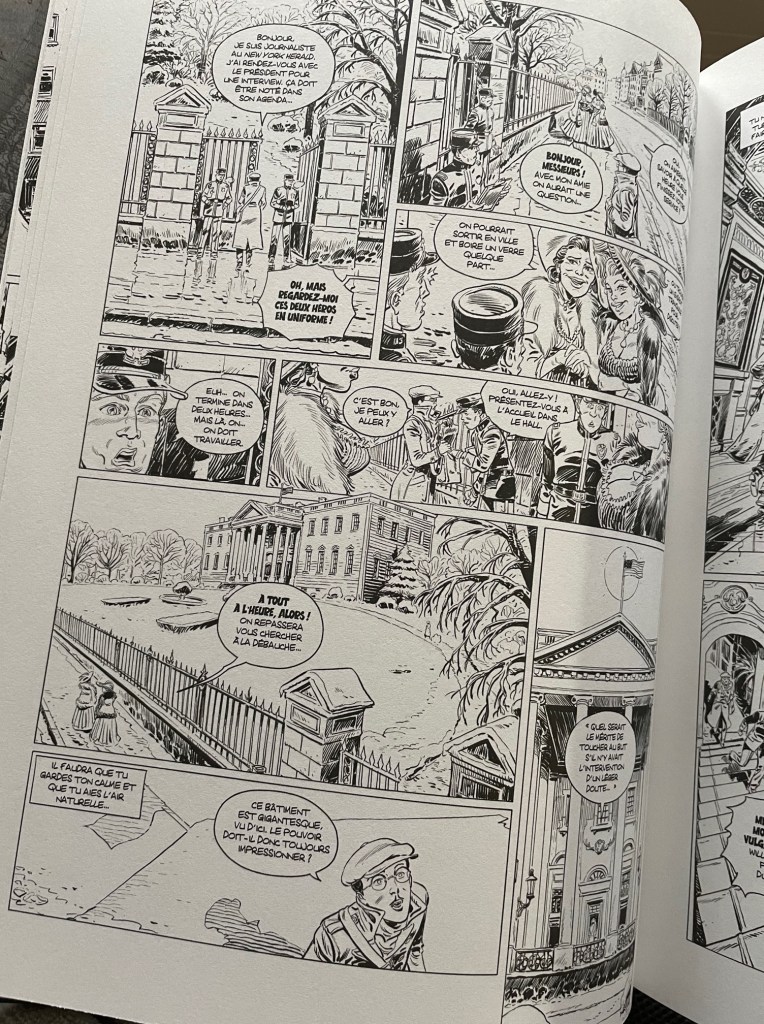 On ne le dira jamais assez, mais le dessin en noir et blanc, c’est le dessin originel, celui qui permet vraiment d’apprécier le trait et le style de l’artiste, la minutie apportée dans les détails de chaque planche. Sur une planche en noir et blanc, on découvre tous les petits trucs qui nous ont échappés dans la version colorisée, parce que, parfois, mangés par la couleur.