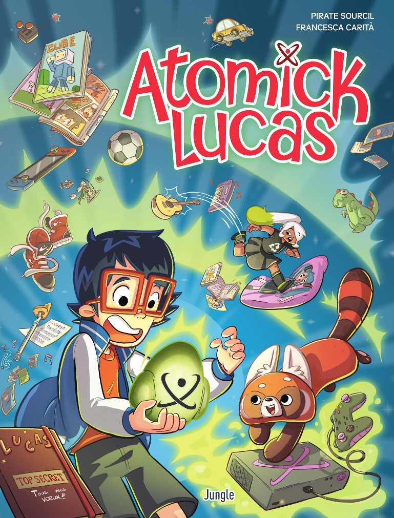 La couverture nous donne l’impression de plonger dans l’univers cartoon de Nickelodeon, vous connaissez ? Jimmy Neutron par exemple… c’est lui qui m’est venu en tête avec le nom de ce nouveau héros “Lucas Atomick” ! Sauf qu’il n’y a rien de scientifique dans cette aventure imaginée par Pirate Sourcil… Lucas est un gamin souvent malmené à l’école, n’ayant qu’une autre paria comme amie et un énorme secret qu’il ne peut bien évidemment pas garder pour lui !