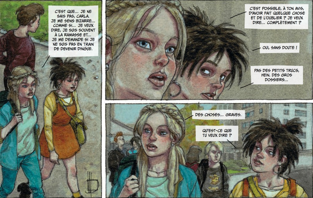 Parce que, pour une surprise, c’est une surprise, et une bonne, en plus ! D’abord parce que je kiffe grave son dessin ; sa mise en couleurs est divine, et surtout, parce que le scenario est excellent. On a tout de suite envie d’en savoir plus sur cette sordide histoire et l’auteur, sans nous mener en bateau, prend bien son temps pour nous faire réaliser quels en sont les dessous.