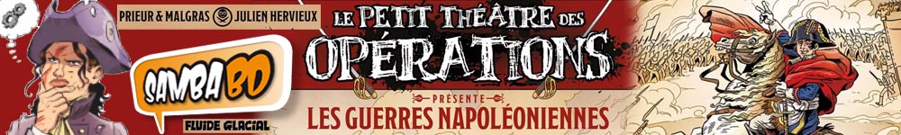 Après les deux Guerres mondiales, Julien Hervieux (aka L’Odieux Connard) explore une autre époque historique avec Prieur & Malgras qui mettent en scène des exploits incroyables qui se sont déroulés pendant les guerres napoléoniennes. Connaissez-vous Lisette, la jument de guerre, qui mordait les soldats russes pour sauver la vie de son capitaine Marbot ? Saviez-vous que pour faciliter l’engagement des recrues l’armée britannique acceptait que les femmes accompagnent leurs hommes à la guerre ? Connaissiez-vous la persévérance du général Daumesnil qui, même après l’abdication de Napoléon, a refusé de rendre Vincennes pendant 120 jours face aux Russes ? Autant d`anecdotes surprenantes à découvrir dans ce tome du Petit Théâtre des opérations ! Avec sa formule désormais lue et approuvée par des milliers de lecteurs : des histoires longues suivies de textes documentés appuyant leur véracité, ainsi que de courtes anecdotes toutes aussi étonnantes. Et si vous vous posez la question, oui, tout est vrai ! Toute ressemblance avec des personnages et faits ayant existé est absolument volontaire.