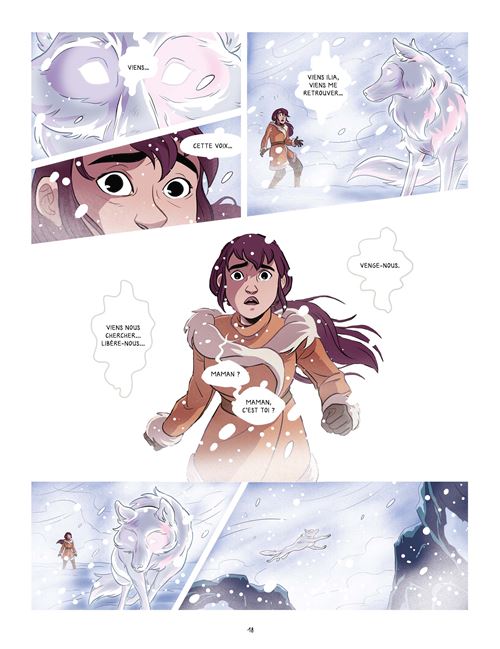 La couverture, bien que superbement mise en valeur par les couleurs de Claudia Razzoli (dans la même veine que tout l’album d’ailleurs), aurait pu démontrer davantage le courage de son héroïne (qui semble avoir peur, vous ne trouvez pas ?!) là où la magie environnante, et ce loup translucide et brillant comme les cristaux, sont quant à eux attractifs pour cette aventure sans prétention, mais fort agréable à lire malgré tout. Enjoy !