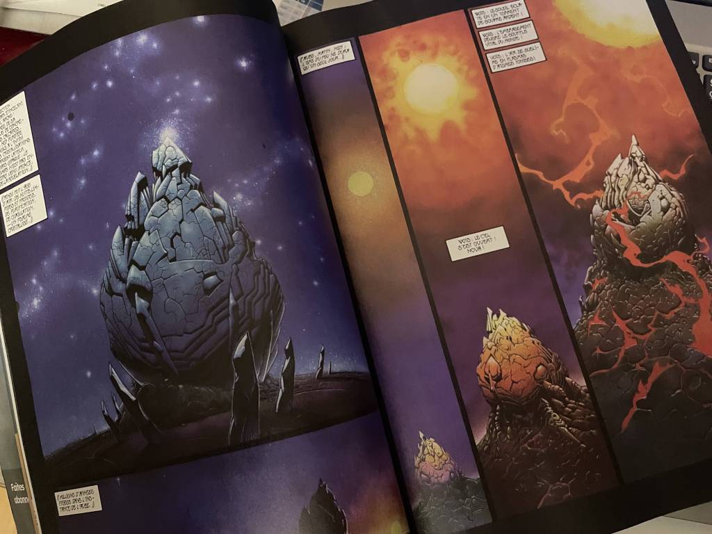 5 décennies de bandes dessinées qui ont marqué l’histoire. 5 décennies retracées en 5 albums au format magazine de 300 pages – des mook – dans lesquels les plus vieux lecteurs redécouvrirons des classiques de la SF ou de l’aventure en BD. Les plus jeunes lecteurs, quant à eux auront la joie et le bonheur de découvrir tout simplement des chefs d’œuvres de narration et de graphisme comme on n’en fait plus, ou presque. Dans ce premier numéro qui expose la première décennie de 1975 à 1985 marquant les débuts de l’aventure Humanos et Métal Hurlant, on retrouve donc des auteurs majeurs dont bien sûr Moebius, Dionnet et Caza qui à eux trois ont changé à tout jamais la science-fiction en BD. Mais il y a aussi d’autres grands noms comme Crespin, Gillon et Ceppi et des récits complets, courts ou longs publiés ici, et c’est ça l’intérêt, dans leurs versions originale. Par exemple Le repaire de Kolstov, tome 3 de la série Stéphane Clément de Daniel Ceppi, dans sa version en noir et blanc publié chez les Humanoïdes Associés avant d’être entièrement redessiné et colorisé chez Casterman. Toujours intéressant de voir l’évolution graphique d’un auteur à 8 ans d’intervalle sur un même album.