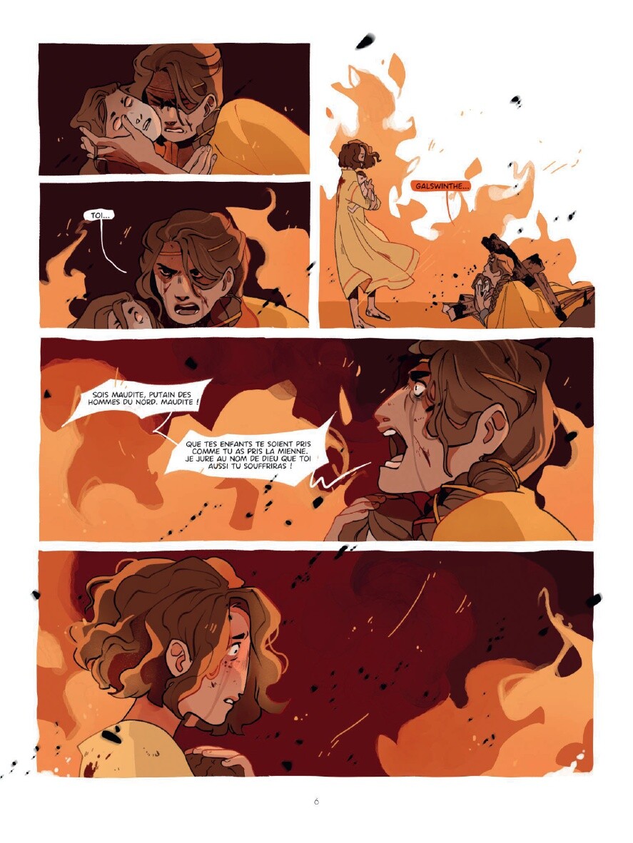 Un deuil bien difficile à faire tant pour Galwinthe que pour son fils Tarik. Tous deux empreints de culpabilité et de remords qui les pousseront loin l’un de l’autre alors qu’ils vivent sous le même toit. Agrémenté d’un dessin moderne, à l’encrage épais, peut-être un peu trop lisse, mais à la colorisation maîtrisée dans des teintes qui nous plongent directement dans l’atmosphère des différentes scènes : le récit est un mélange à la fois de cultures et de sentiments humains.