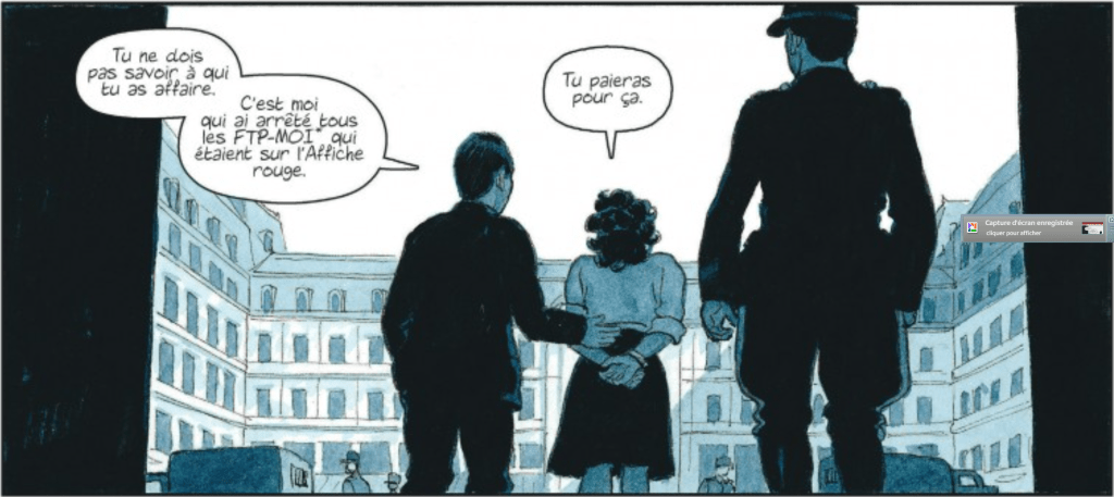 Et j’ajouterai que le traitement de la torture, à la fois tout en pudeur et en non-dessinés, reste un élément marquant de cette BD. Heureusement, les mots de Madeleine prennent le relais du dessin quand celui-ci va devenir insupportable. Je ne dis pas que les mots mis sur ces actes barbares sont plus supportables, mais avec le dessin, ça resterait peut-être plus ancré dans nos têtes… Ceci-dit, avec les mots, c’est notre imagination qui travaille… Bref, la torture, c’est immonde !